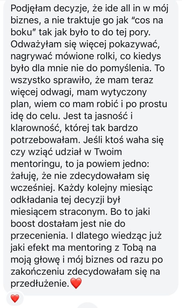 Będziesz mogła wracać do niego przy każdym kolejnym poziomie w biznesie: podnoszeniu cen, skalowaniu, nowej ofercie.