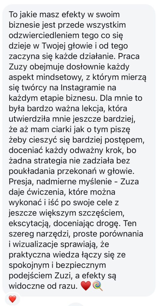Spontanicznie wchodzisz na live na instagramie i opowiadasz o swoim nowym produkcie, nie ukrywasz cen, nie tłumaczysz się, bo czujesz, że cena odzwierciedla Twoją wartość.